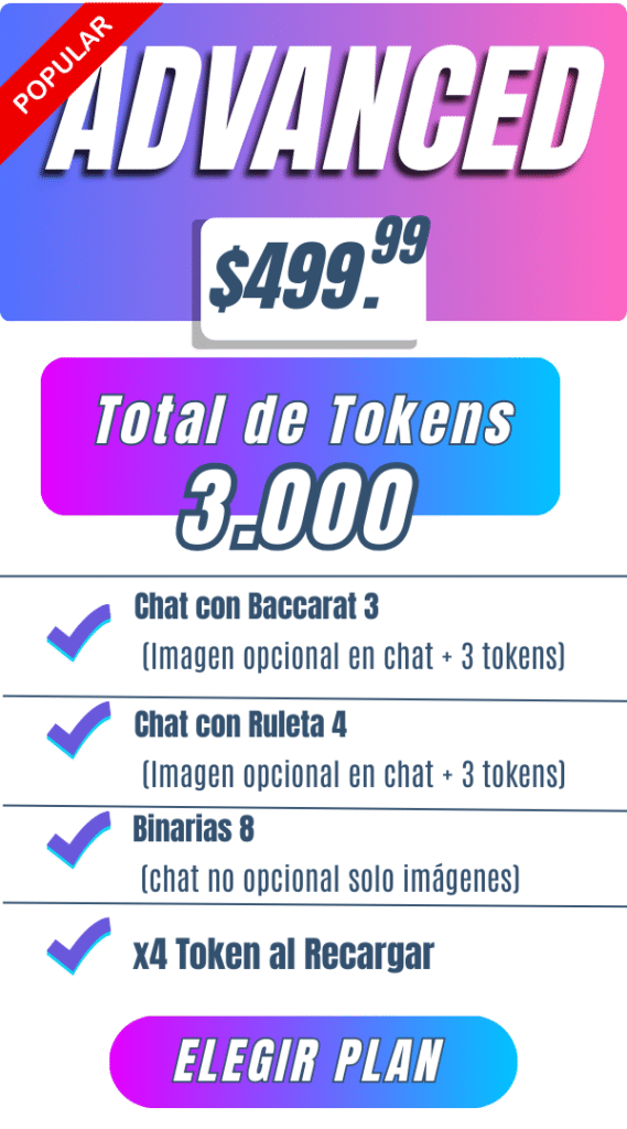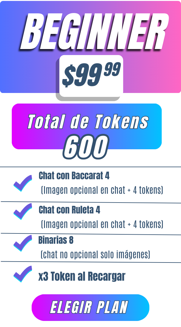 Mira cómo nuestras inteligencias artificiales operan en vivo en opciones binarias, ruleta y baccarat.